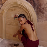 The plunging neckline and ultra-low back bring the heat, while the halter tie can be styled two ways: in a soft bow at the neck or wrapped as a sleek scarf. Whether you're layering over swimwear or heading straight to the bar, HOPE is the moment.